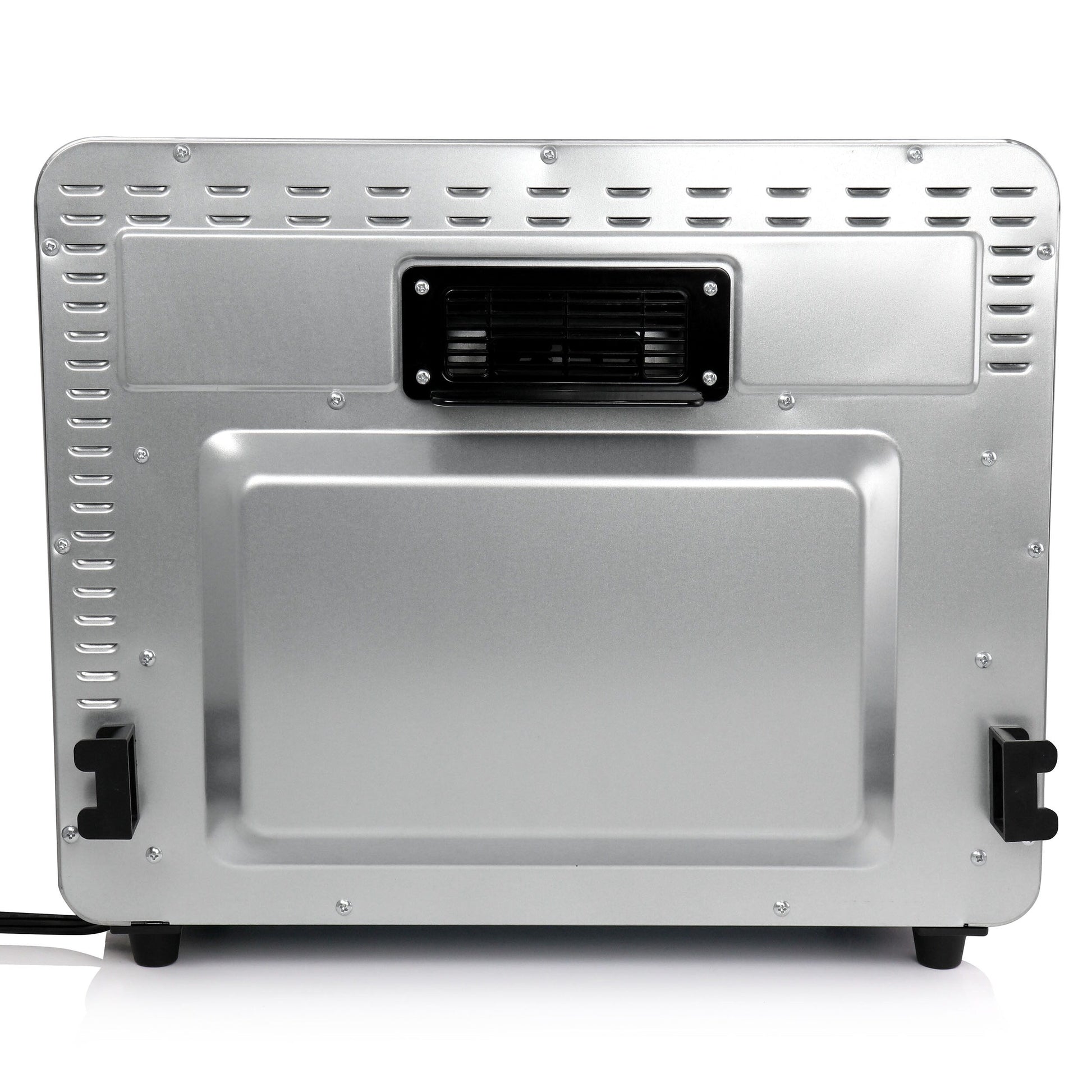 With the Multifunction Air Fryer Toaster Oven, you can do so much more. Beautifully engineered design has convenience and precision in mind with 21 preset functions that will take the guessing game out of cooking. Extra versatile Digital Display with easy to use function knobs and 21 preset functions: French Fries, Chicken Wings, Steak, Pizza, Vegetables, Toast, Broil, Bake, Roast, Dehydrate and so much more.By using the 360 degree Hot Air Circulation technology, the air fryer toaster oven can offer you more delicious and healthier snack and meals.Large 25L size capacity for whole chicken and frozen pizzas, but sleek and compact to complement any kitchen. Easy to clean interior and removable crumb tray bottom.Multi Function OvenCapacity: 25LPower: 1800WVoltage: 120V-60HzElements: 6Presets: 21Material: Stainless SteelTimer: 12 HoursTemperature: 100-450 Degrees FahrenheitPlug: 3 Pin ULItem Size: 17 x 18 x 14.50Internal Dimensions: 14.5 x 12 x 8Whats Includes:One Multifunction Air Fryer Toaster OvenOne Air fryer BasketOne Baking PanOne Oven RackOne Crumb TrayUser Manual