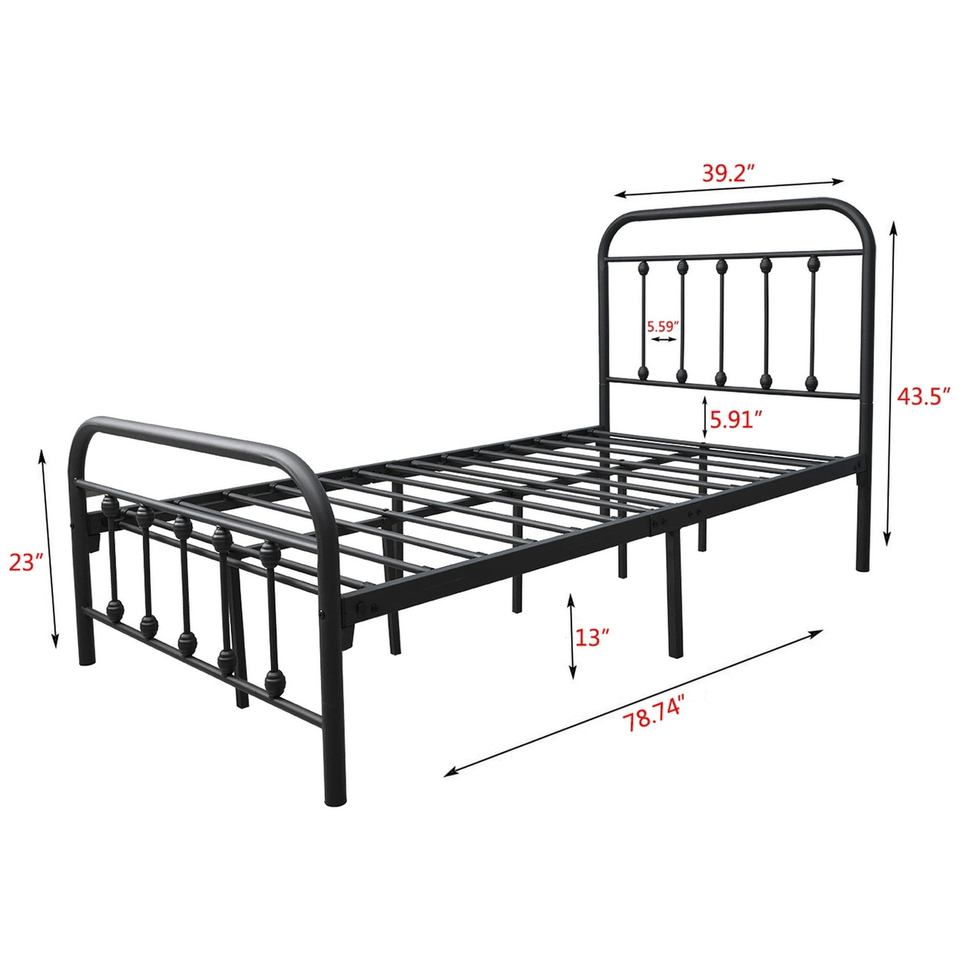 - Twin: 39.2 inches W x 78.74 inches L x 43.5 inches H