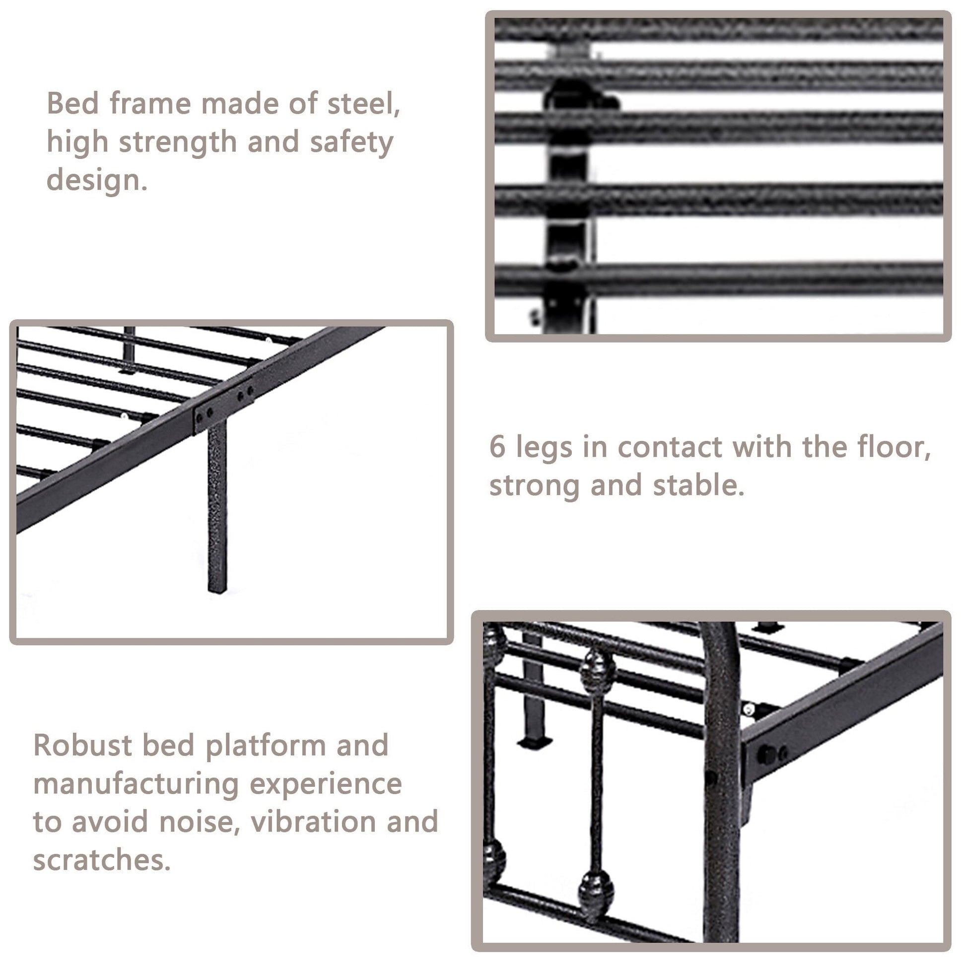 - Smooth Surface: The bed frame's color is true to the photo and fits in with any decor style, providing brightness to your room and lasting for years.