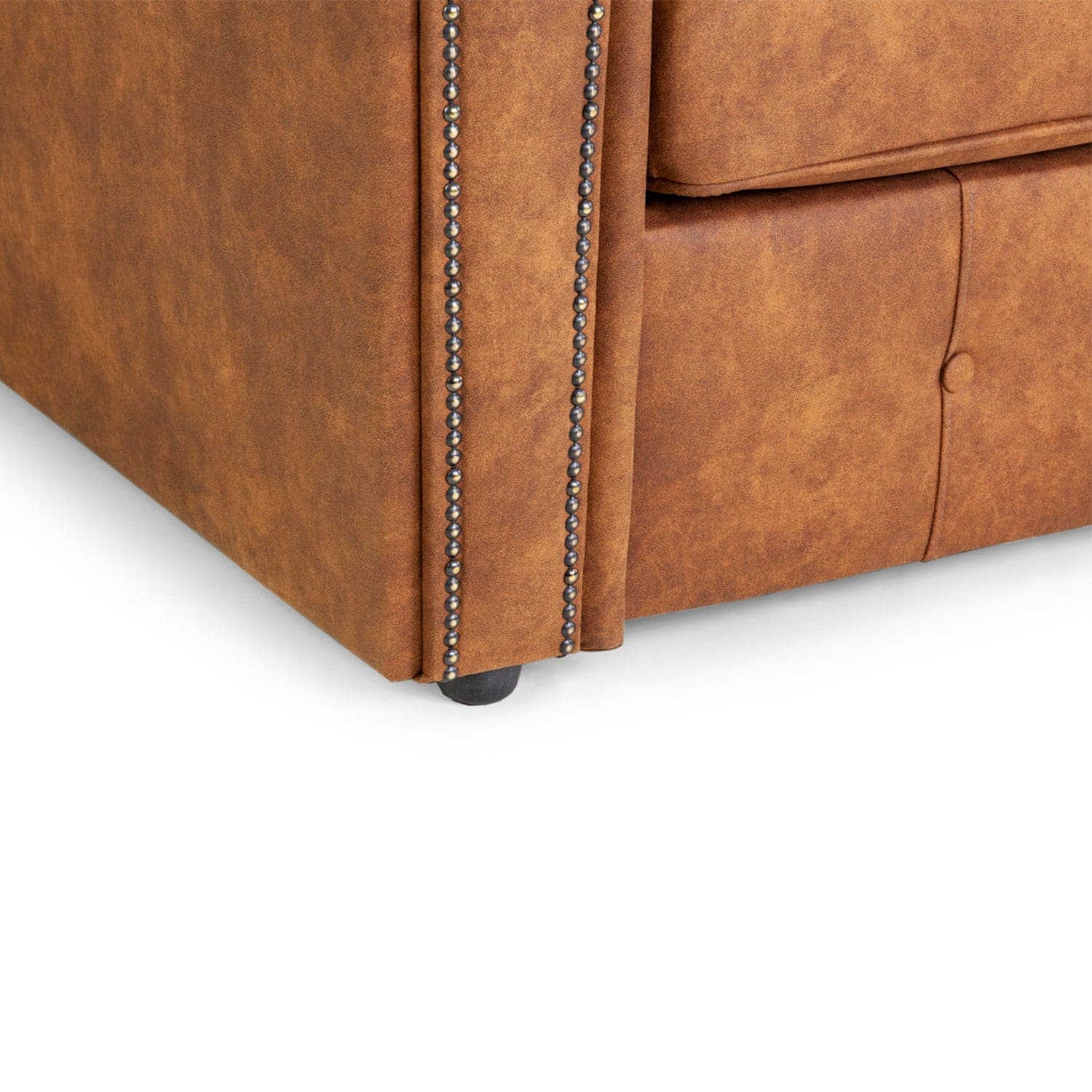 Elegant metallic studded detailing along the arms provides a classic, refined aesthetic.