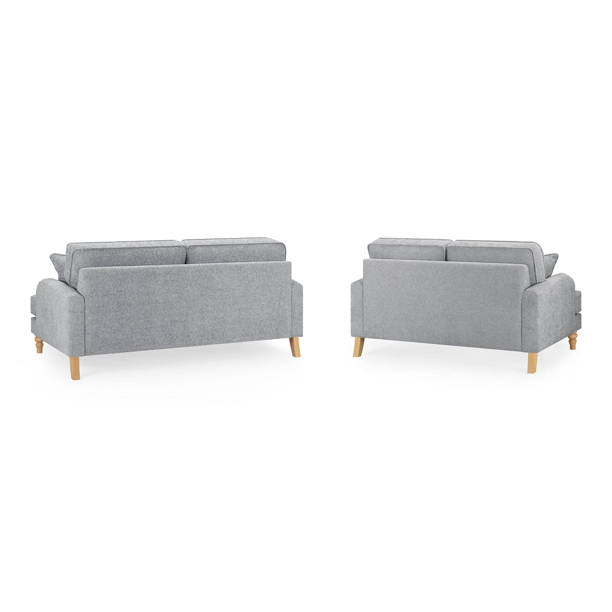 Includes a three seater and a two seater sofa, upholstered in durable slate-colored polyester fabric.