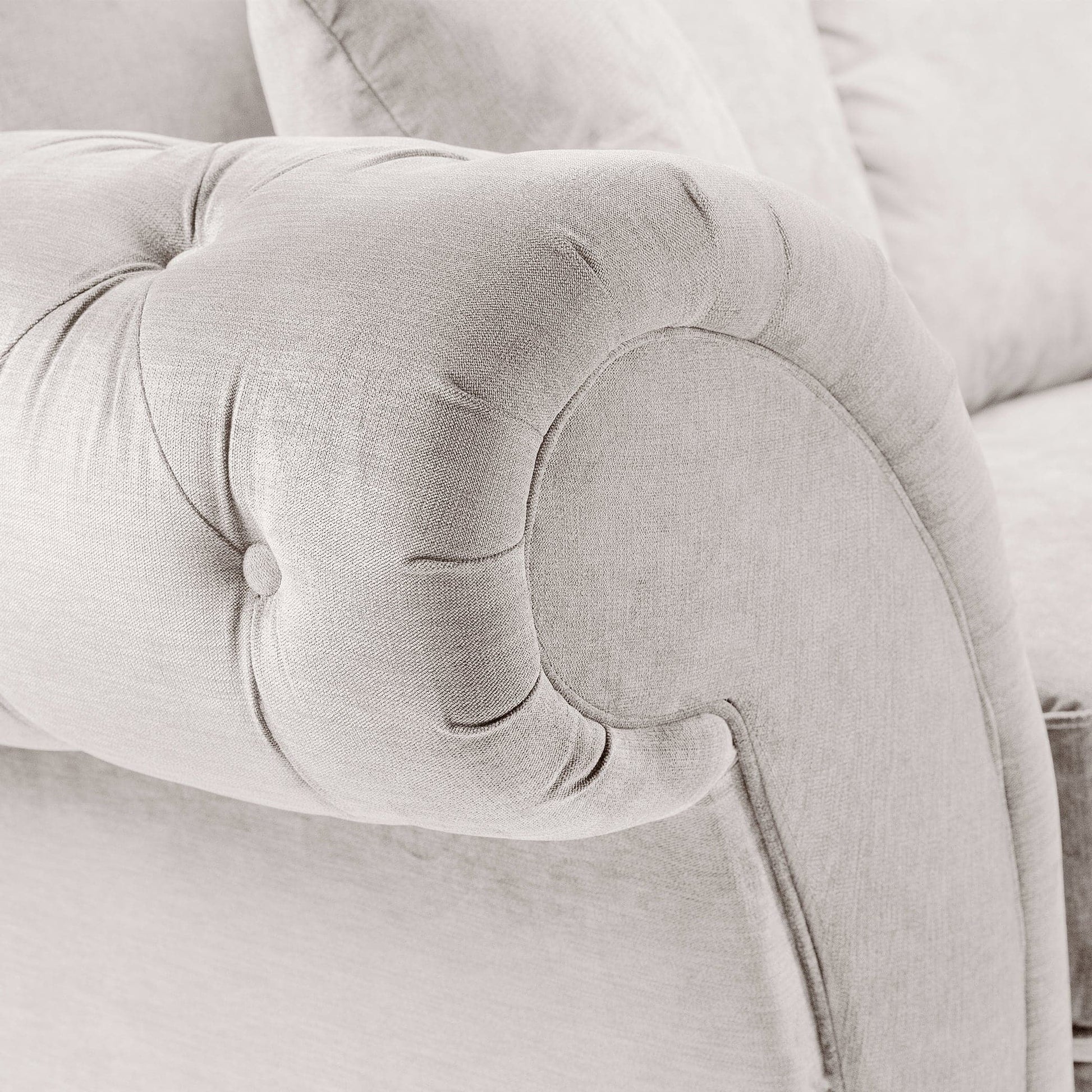 Elegant button-tufted scroll arms and fullback cushions add a classic, sophisticated look.