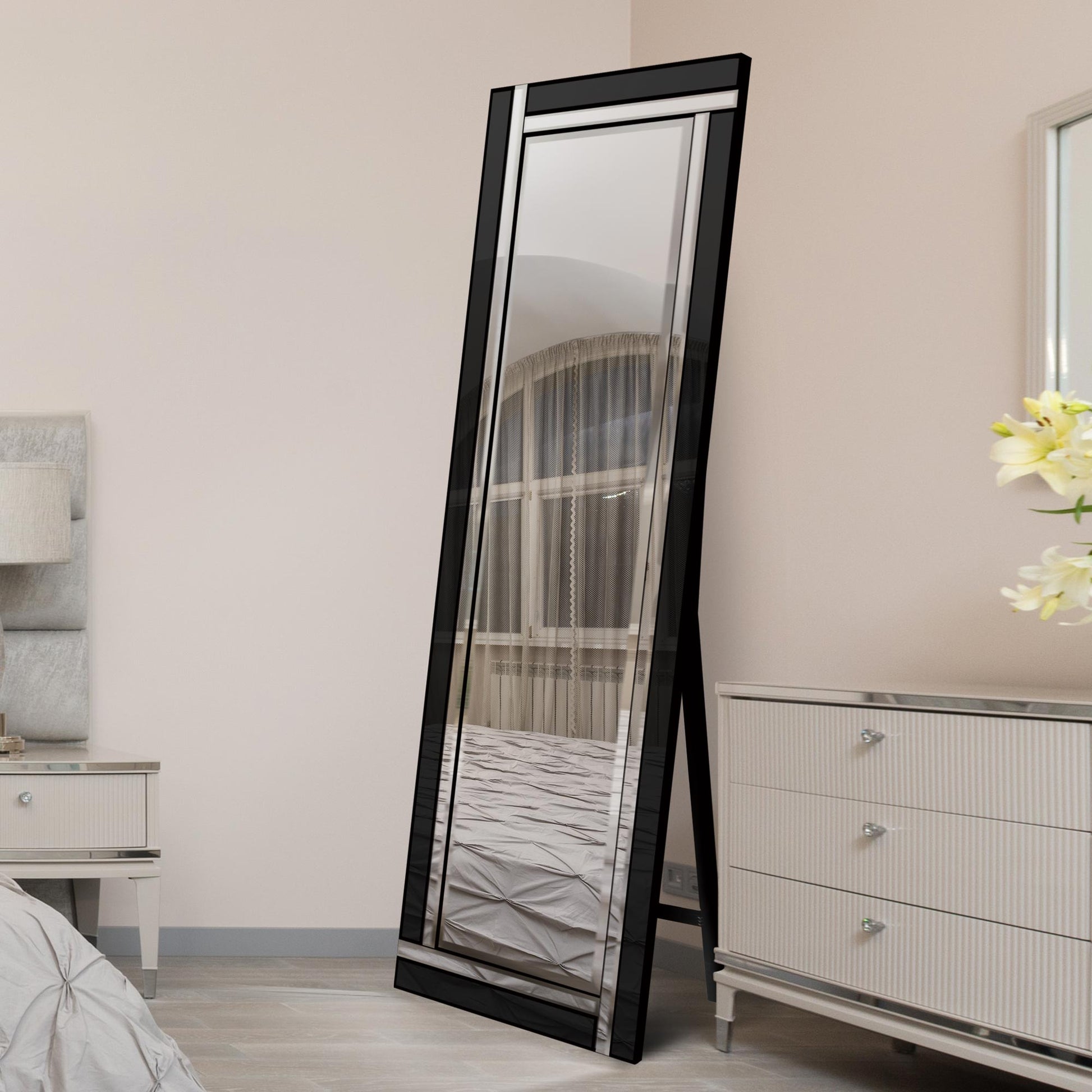 Enhance your living space with the Black and Mirror Double Bevel Free Standing Cheval Dress Mirror, a stunning decorative wall mirror that adds elegance to any room. Perfect for bedrooms, dressing rooms, or entryways, this versatile mirror offers both style and functionality. Its sleek black frame and double bevel design make it a standout piece that complements any decor. Transform your home with this exquisite wall mirror and create a sophisticated ambiance.