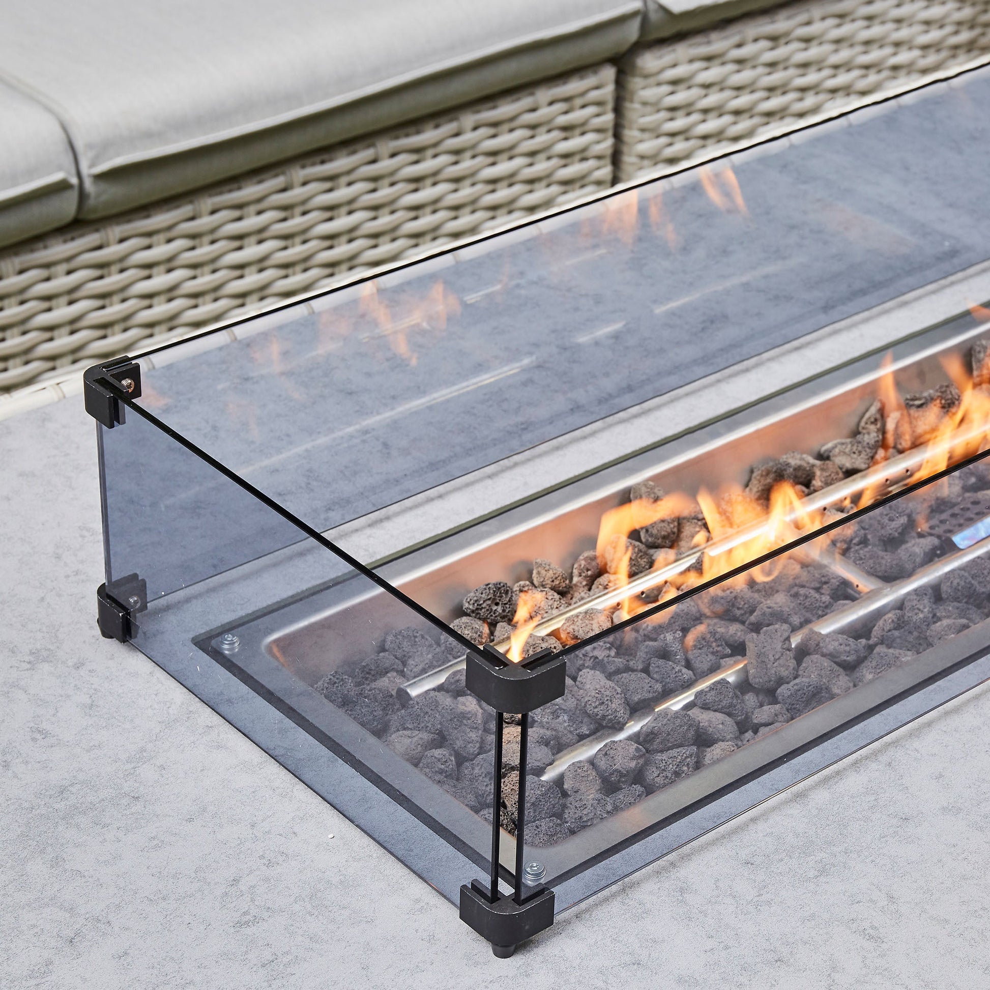 Chakra Rattan Corner Dining Set with Fire Pit – Grey/Beige