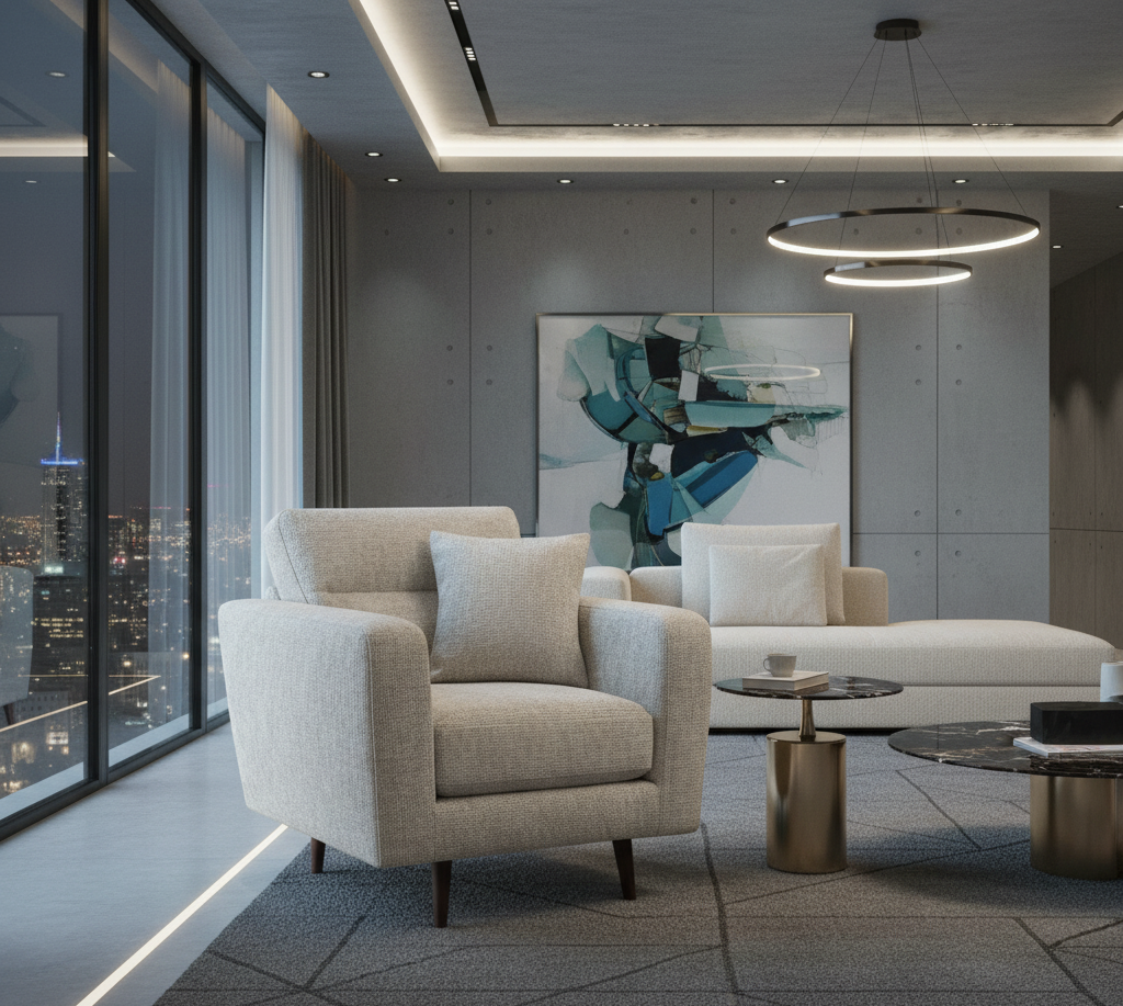 Chester Sofa Beige Armchair, perfect for smaller living areas, bedrooms, or reading nooks.