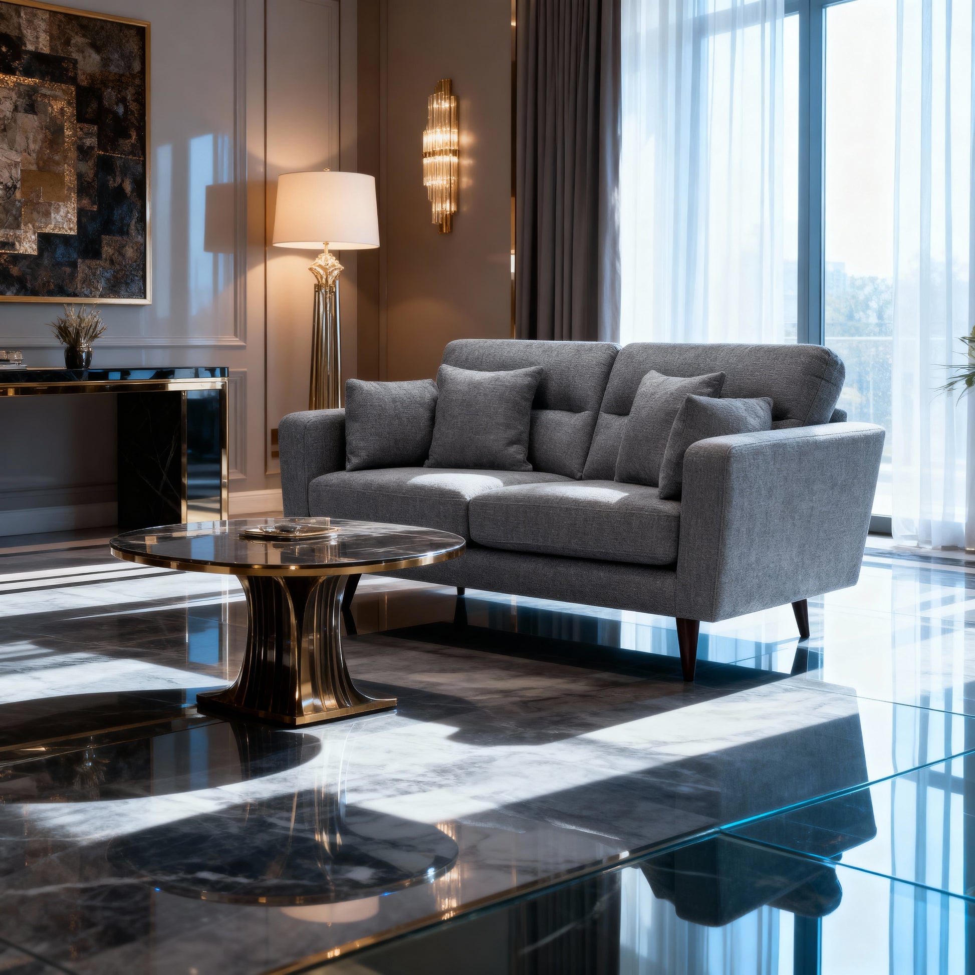 Neutral grey color complements a variety of interior décor styles.