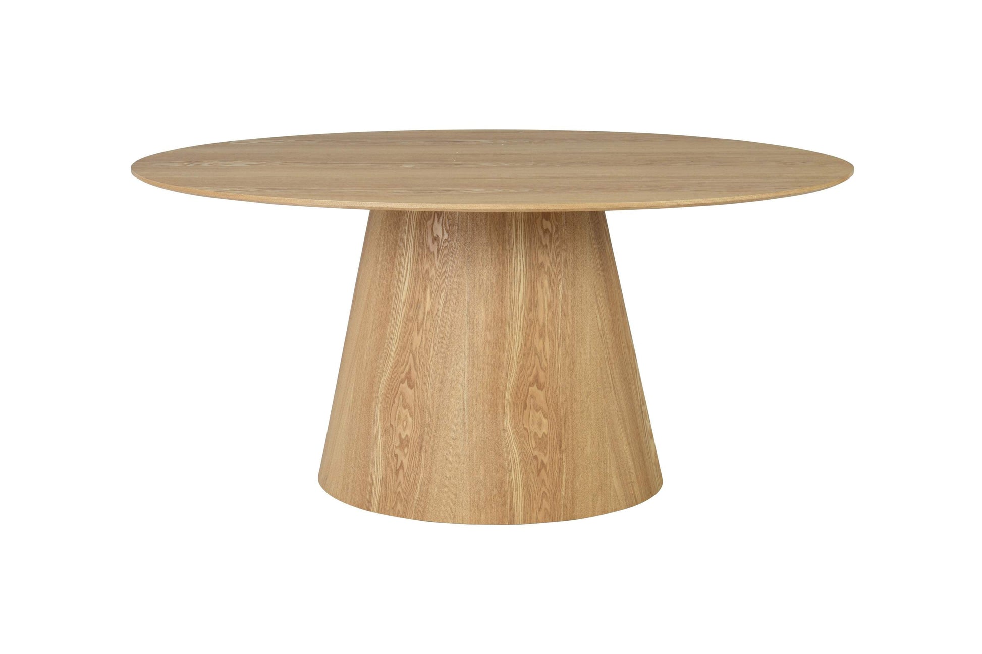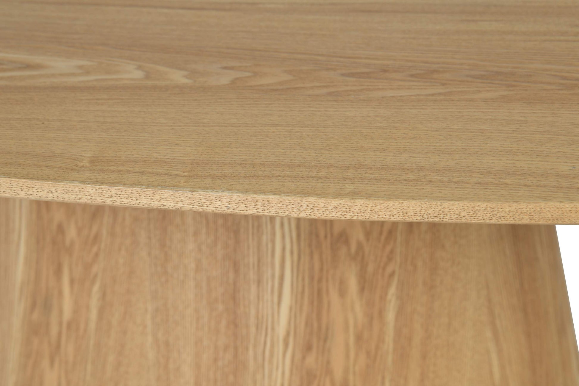 This grand oval dining table is a real statement piece. Finished in natural wood grain effect, with luxurious curved contours and bevelled edges. The 1.6m table top is supported by a substantial tapered pedestal.