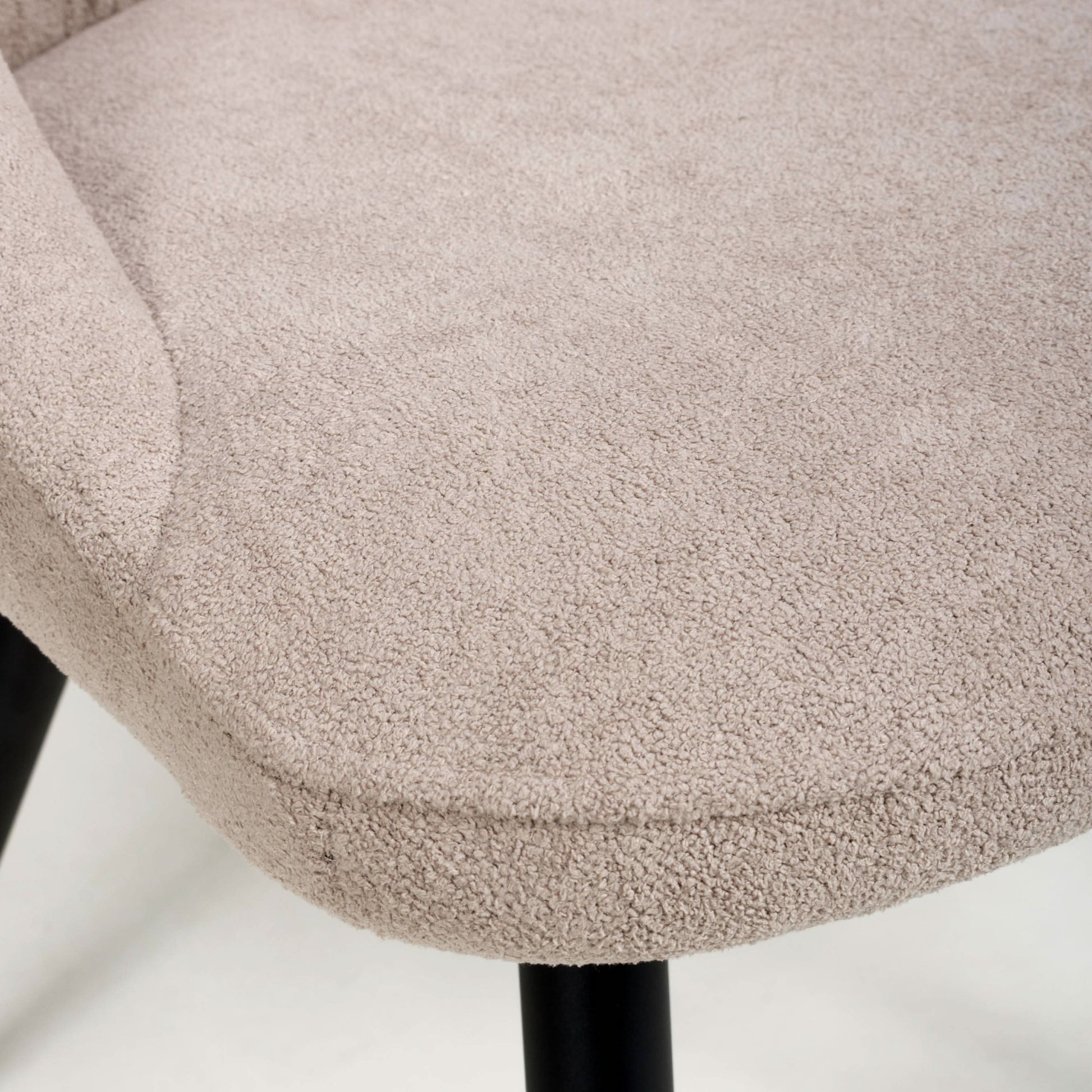 A sleek modernist dining chair, upholstered in a warm natural linen effect. The chair backrest is segmented, with 2 horizontal stitching bands attractively pleating the substantial fabric. Low side arms taper seamlessly into a comfortable padded seat. Supplied with angled black metal legs. Assembly required. Sold in boxes of 2.