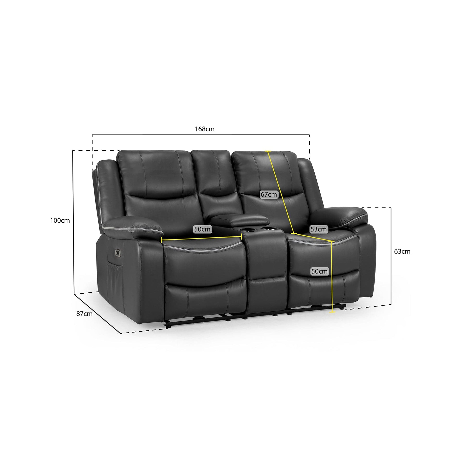 Dexter 2-Seater Electric Recliner Sofa in Black Faux Leather combines comfort with modern style