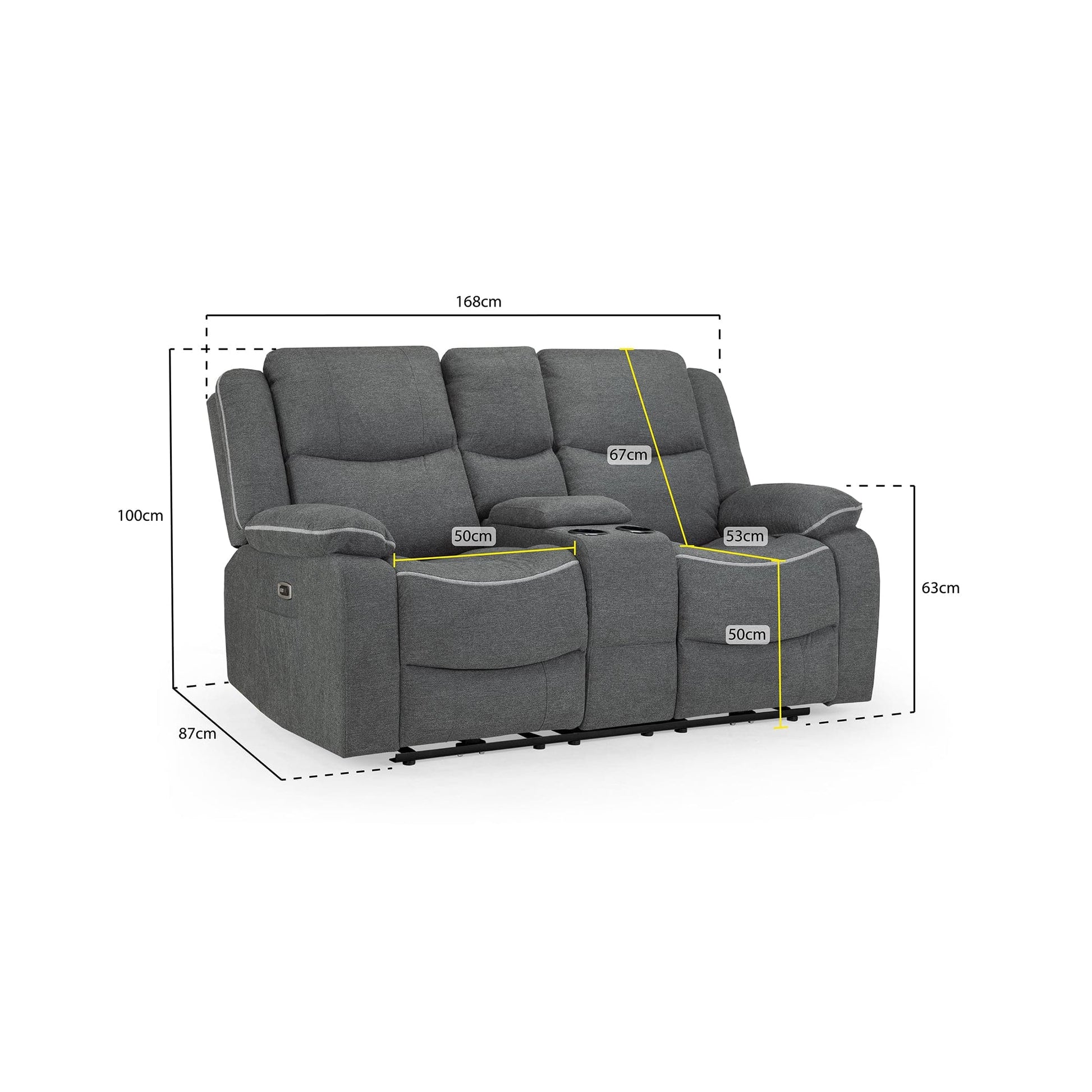 Dexter Electric Recliner Sofa Grey Fabric 2 Seater