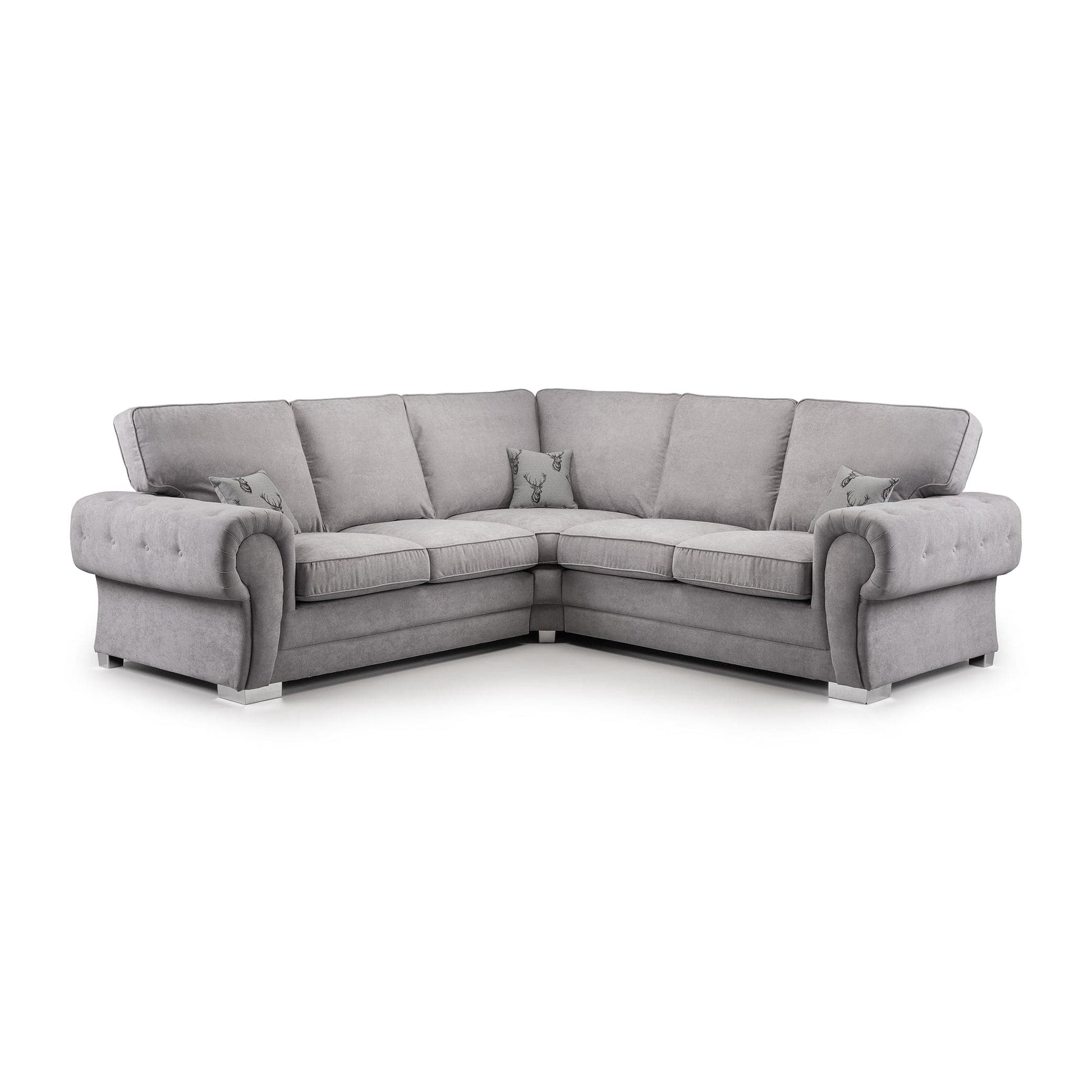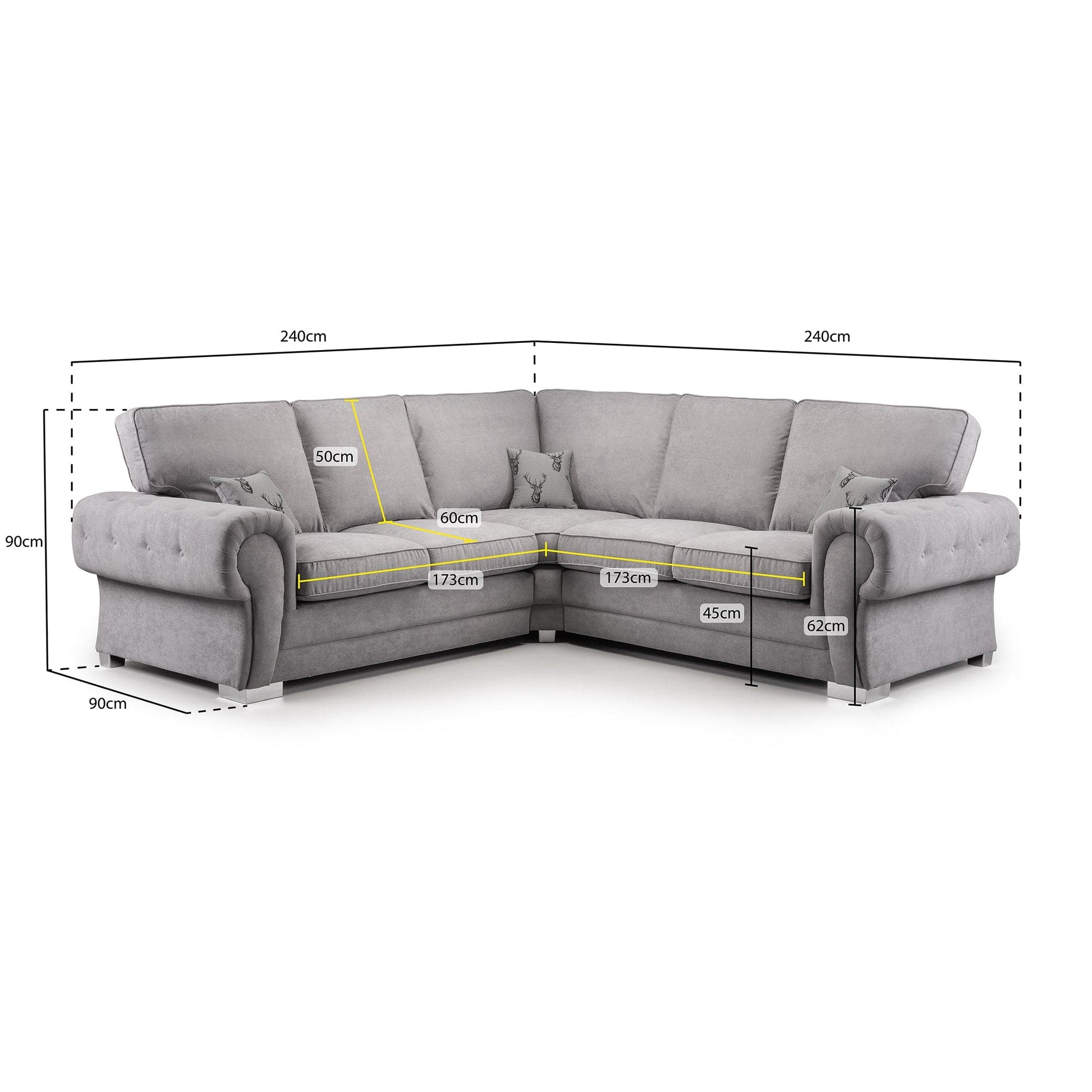 The Jude Fullback Grey Large Corner Sofa by AMC Furniture combines classic comfort with contemporary elegance