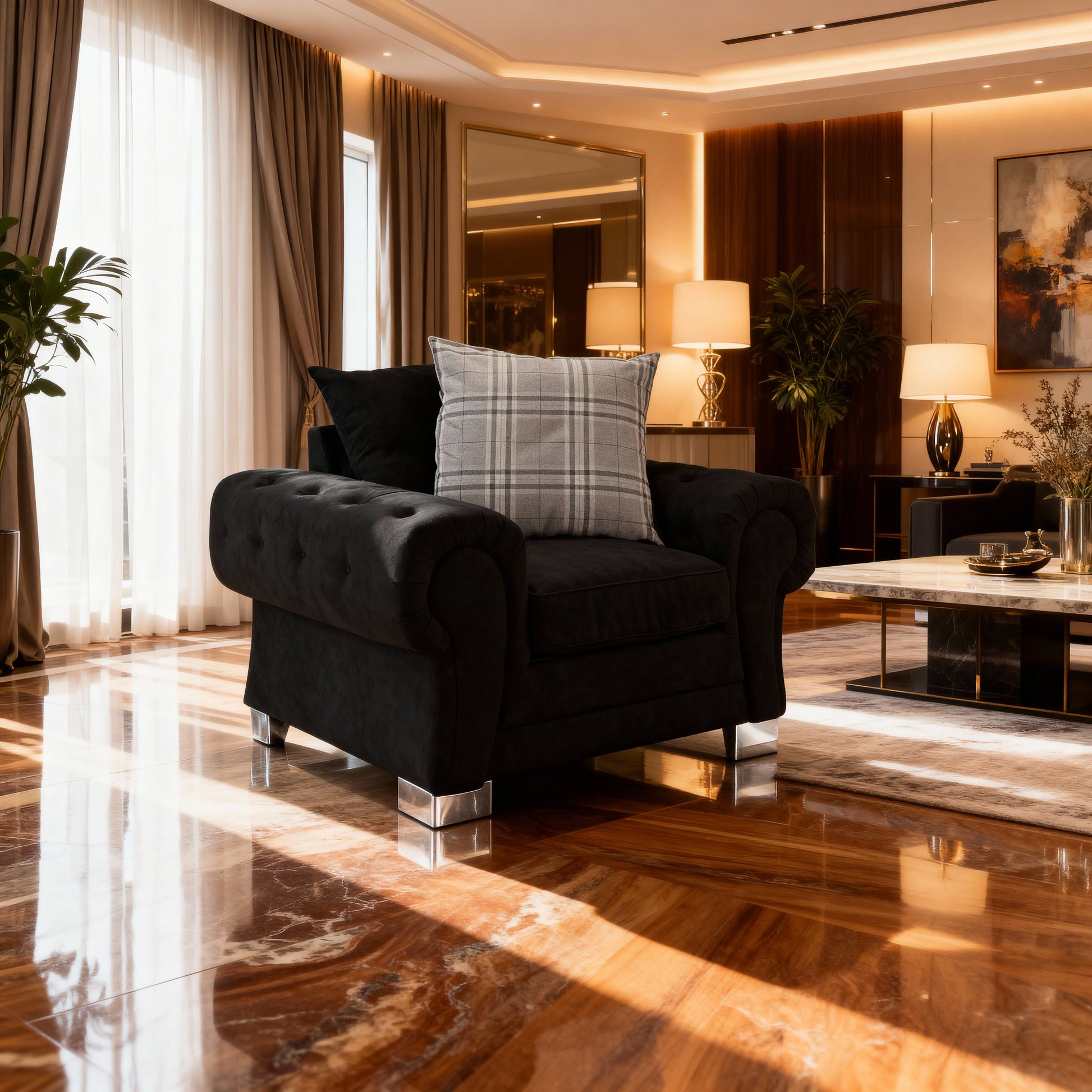 The Jude Scatterback Sofa Armchair in Black brings classic sophistication to your living space
