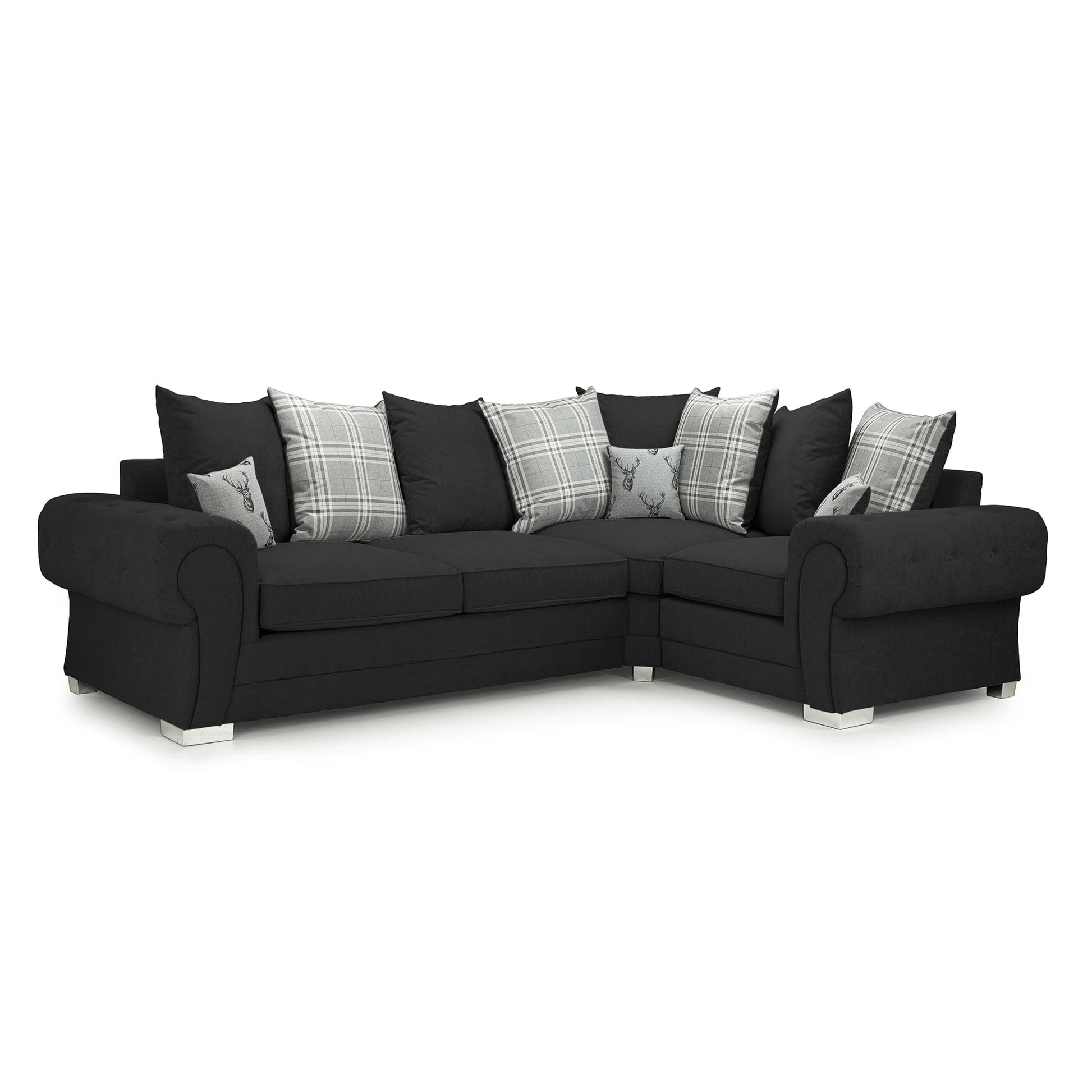 The Jude Scatterback Right Hand Facing Corner Sofa in Black adds timeless elegance to your living space