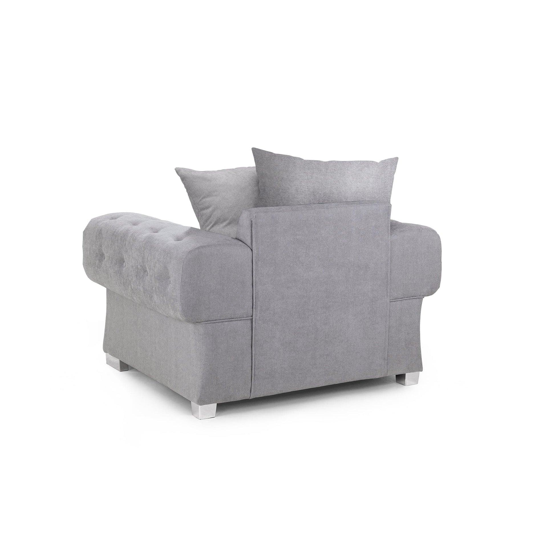 The Jude Scatterback Grey Armchair brings refined charm and timeless style to your living room