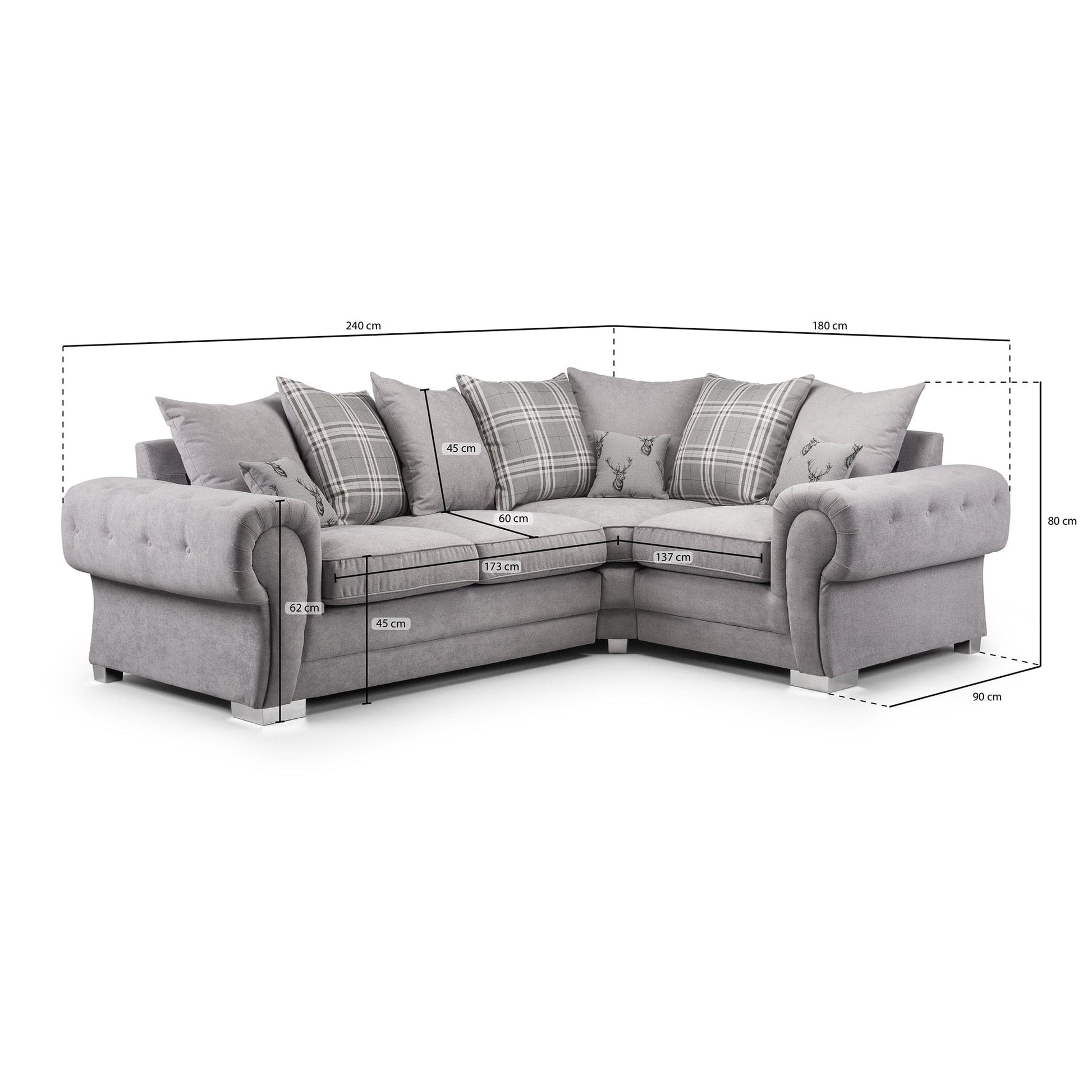 Jude Scatterback Grey Right Hand Facing Corner Sofa combines traditional charm with modern comfort