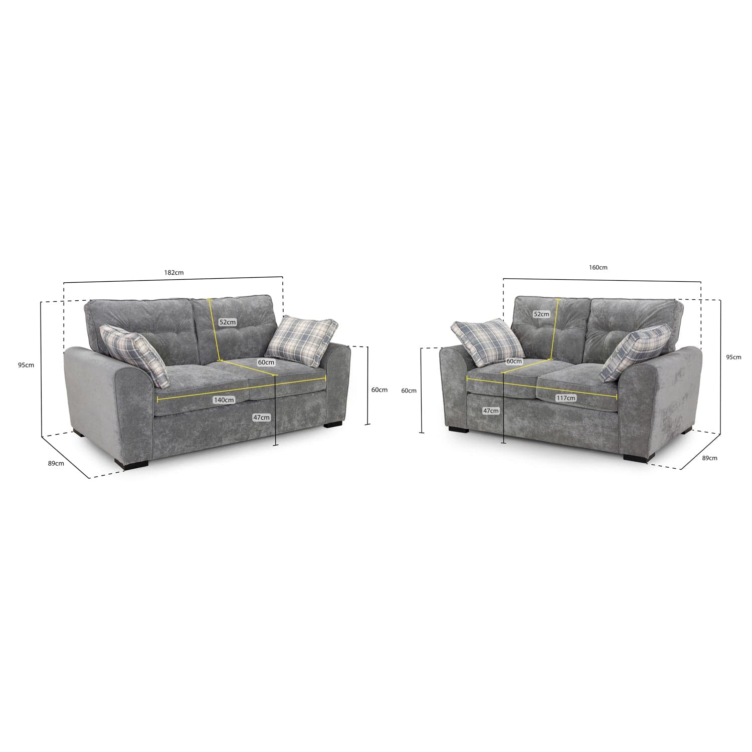 2 Seater: H 95cm: W 160cm: D 89cm