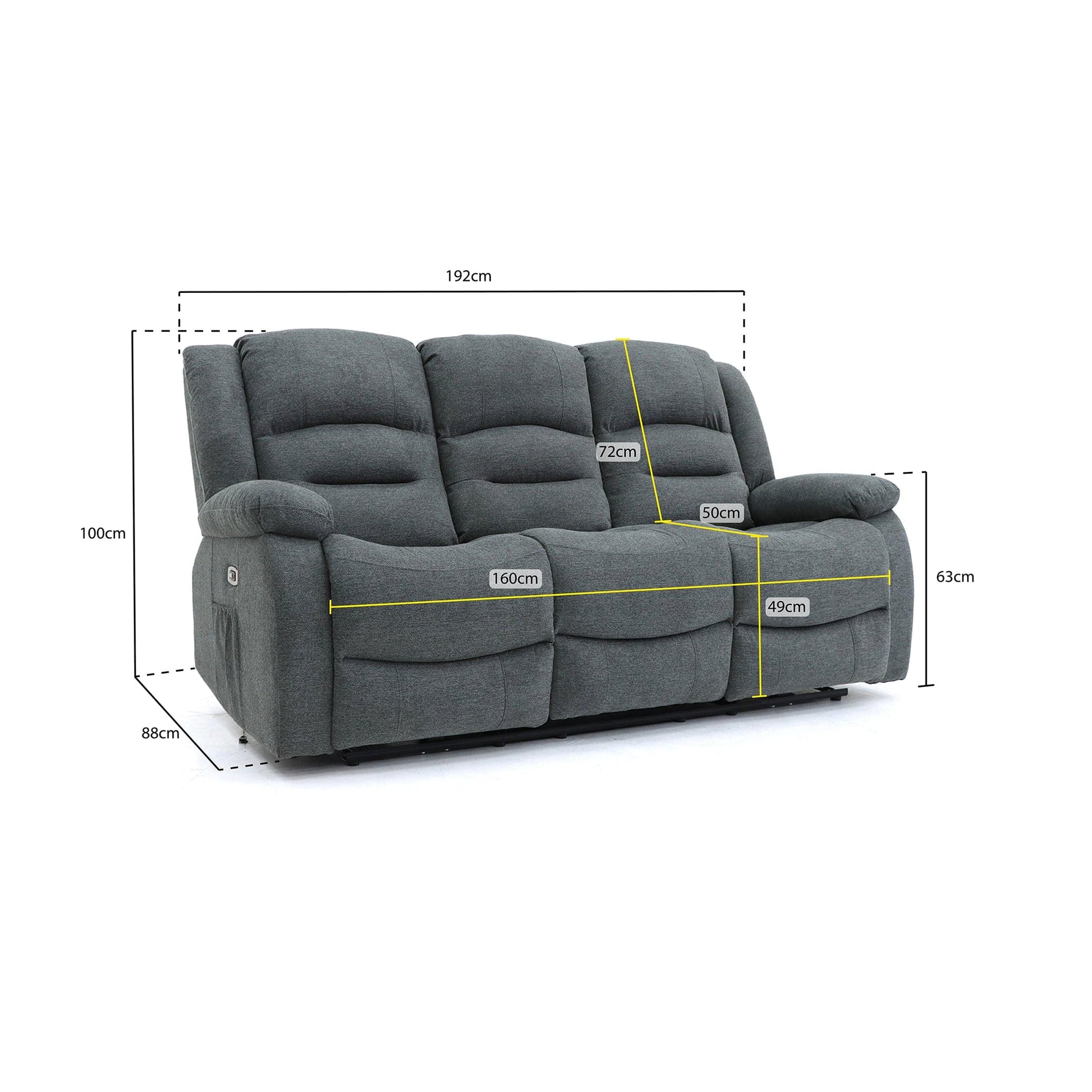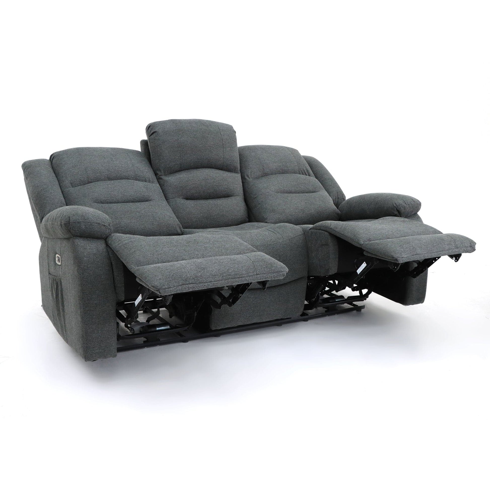 Maya Electric Recliner Sofa Grey Fabric 3 Seater