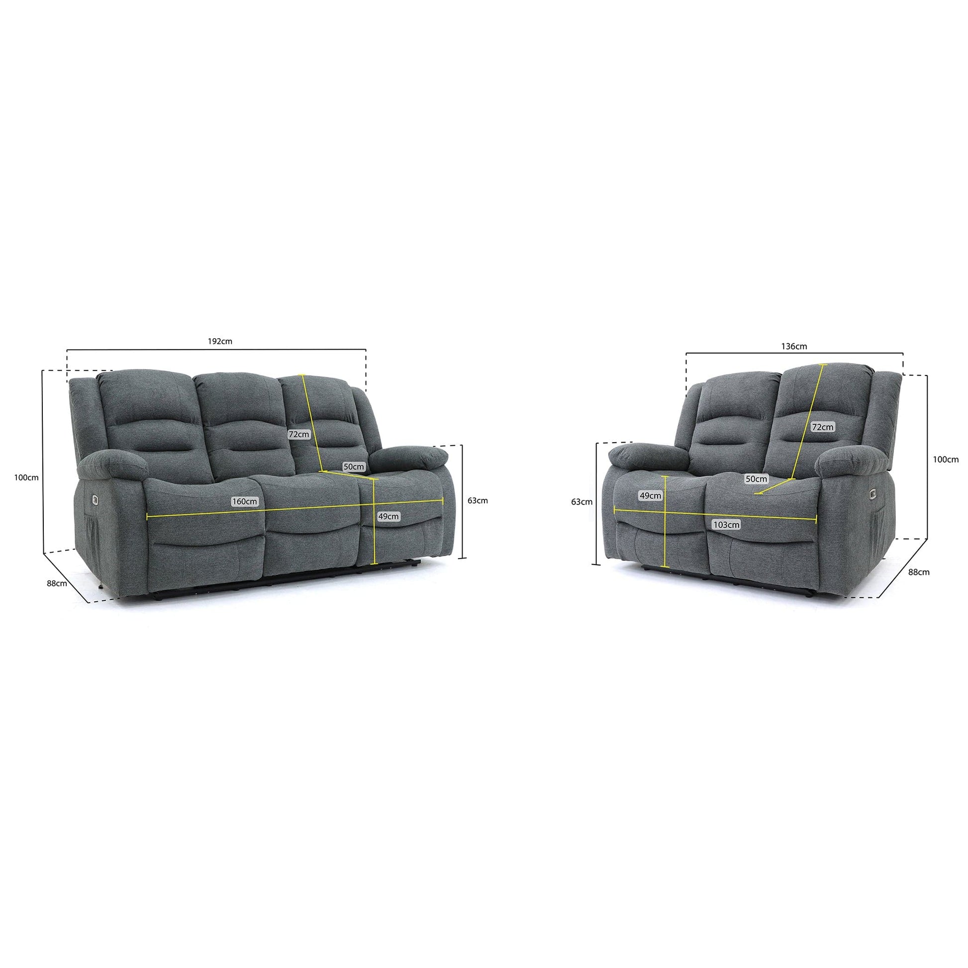 2 Seater: H 100cm : W 136cm : D 88cm