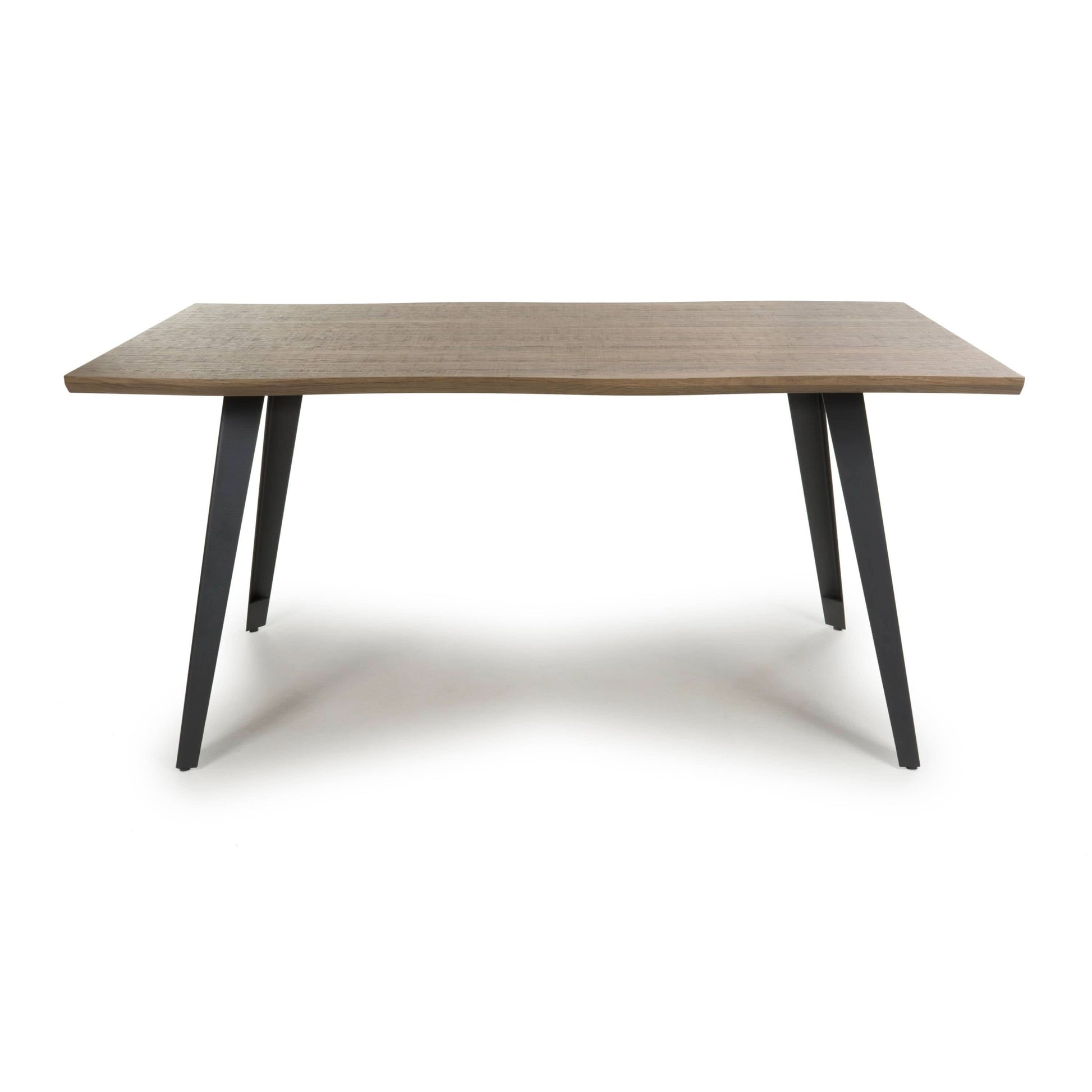 Introduce a touch of industrial and Scandinavian style into your home with the Orwell Medium Natural Curved Dining Table. This 1.6m table features a bevelled wavy cut-out edge, stain resistant wood effect top, and sturdy black powder coated iron legs. With adjustable feet and a traditional yet elegant design, it comfortably seats 4 and is easy to assemble.