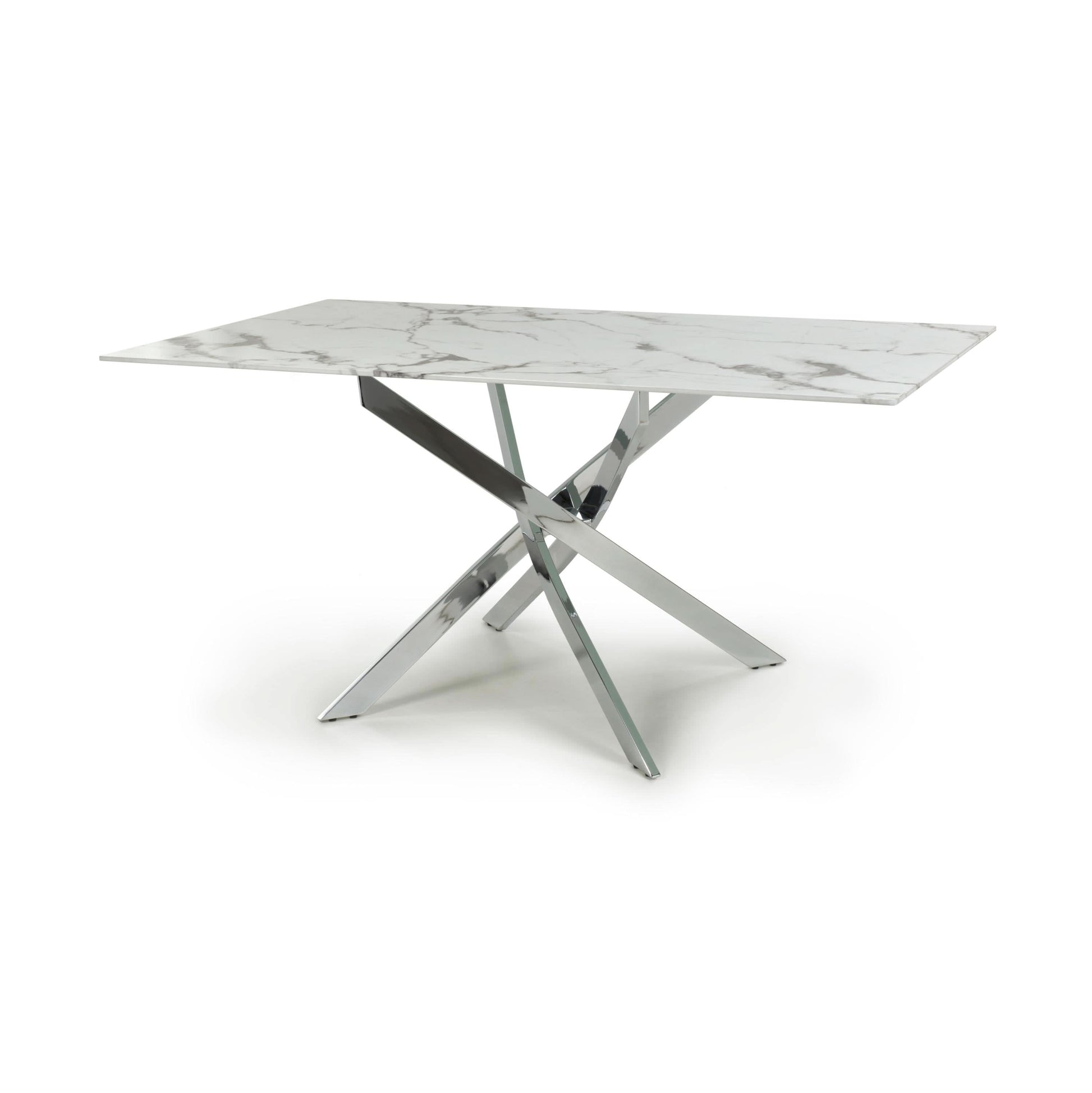 The Raven Dining Table is a sleek and sophisticated addition to any dining space. With a choice of gold or chrome legs and a white marble effect top, this table exudes luxury and elegance