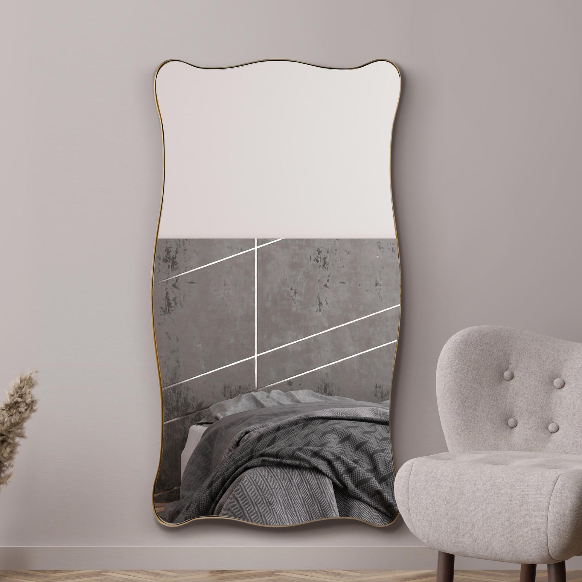 Enhance your living space with 'The Hunter - New Gold Metal Rectangular Wavy Tray Effect Frame Wall Mirror.' This stunning decorative mirror features a unique wavy tray effect frame, adding a touch of elegance to any room. Perfect for the living room, bedroom, or hallway, this wall mirror not only amplifies light but also creates an illusion of space, making it an essential addition to your home decor.