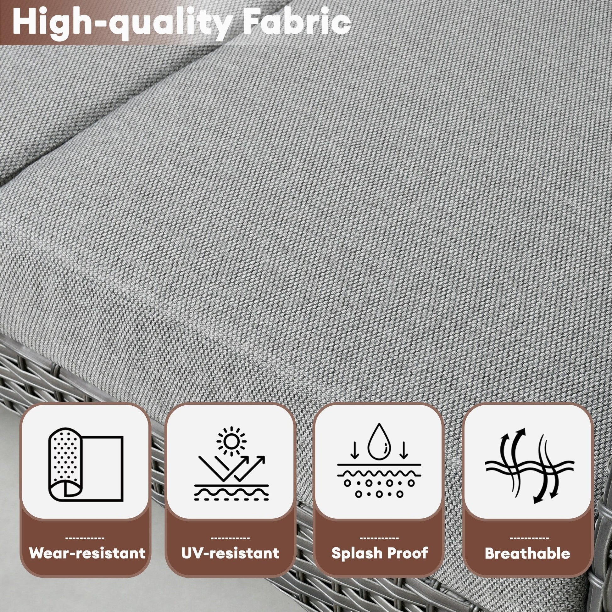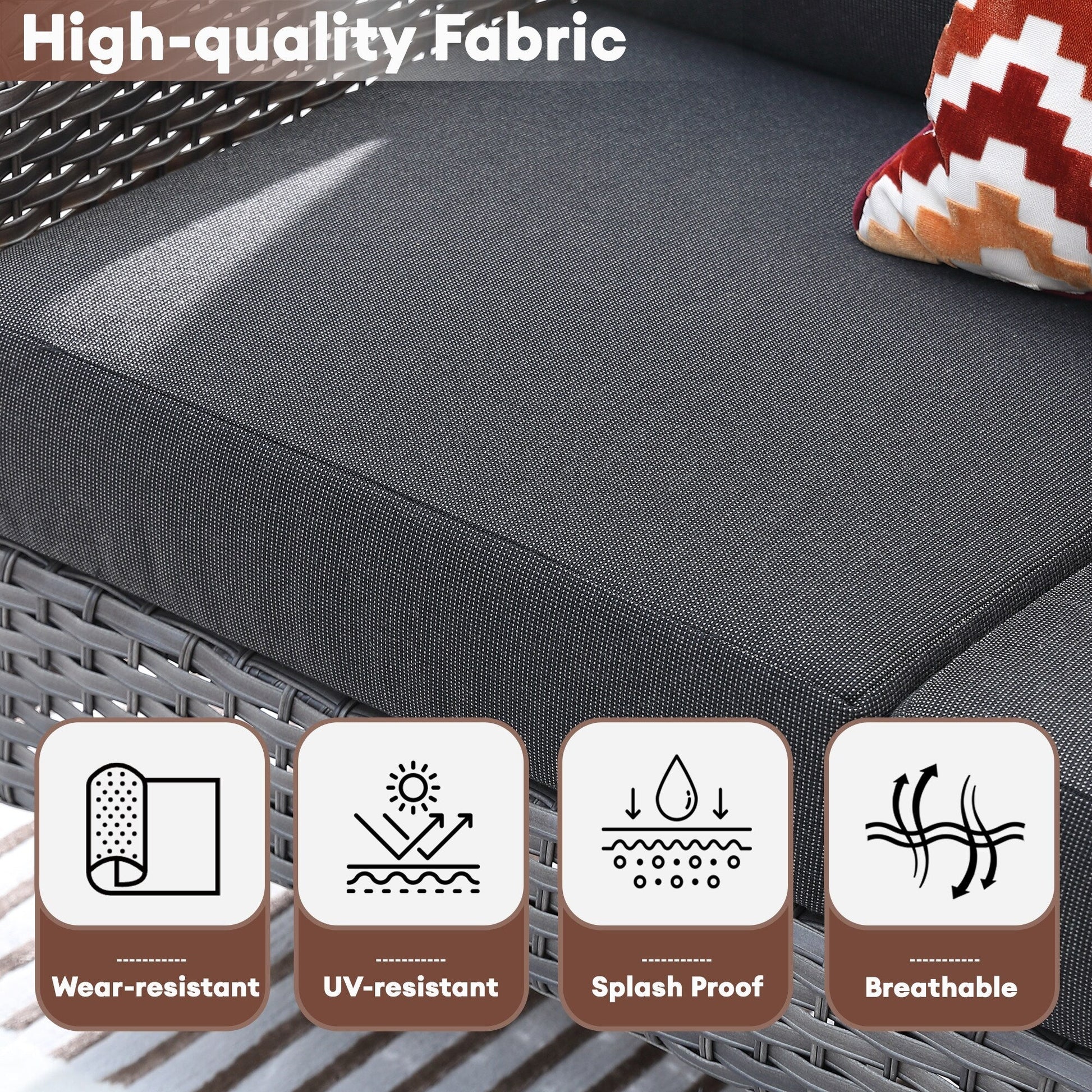 Sturdy powder-coated metal frame and all-weather PE rattan wicker make this set both stylish and durable. UV-resistant and wear-resistant cushion covers are suitable for outdoor long time using. Come with high resilience thick padded cushions, provide you the optimal comfort and relaxation. The table with two-tier design provides additional storage space, perfect for hosting friends or have a fun time with family.
